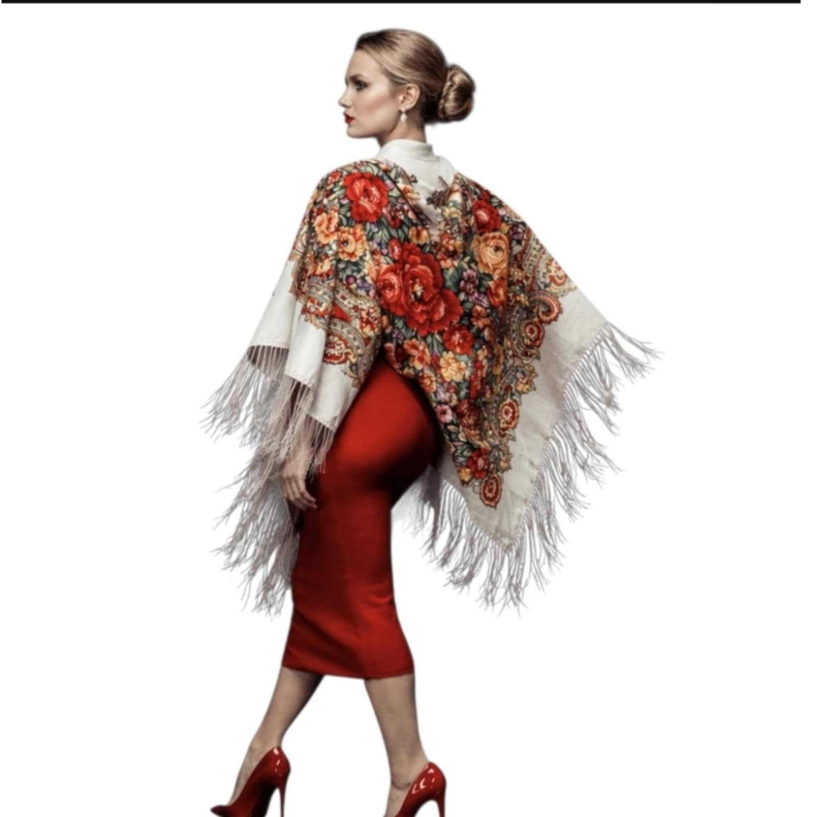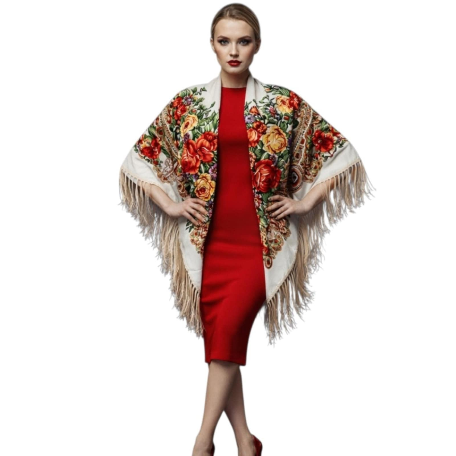 Sal tip gipsy cu imprimeu floral intens cu franjuri