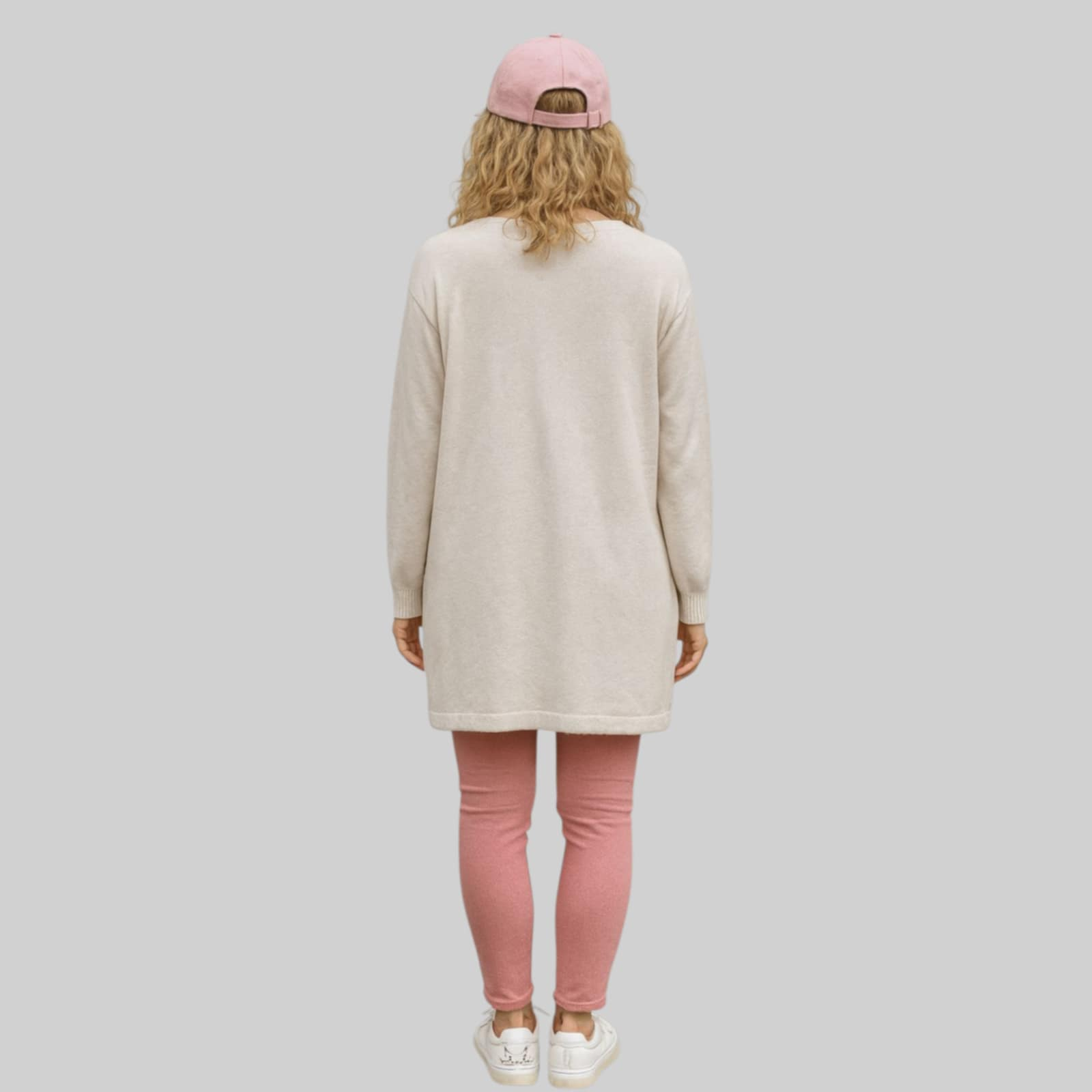 Pulover tricotat crem cu strasuri argintii pe partea din fata