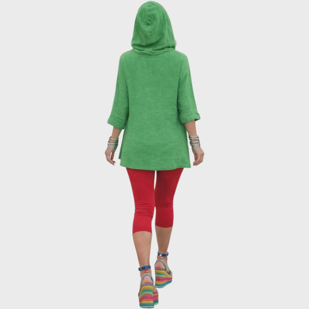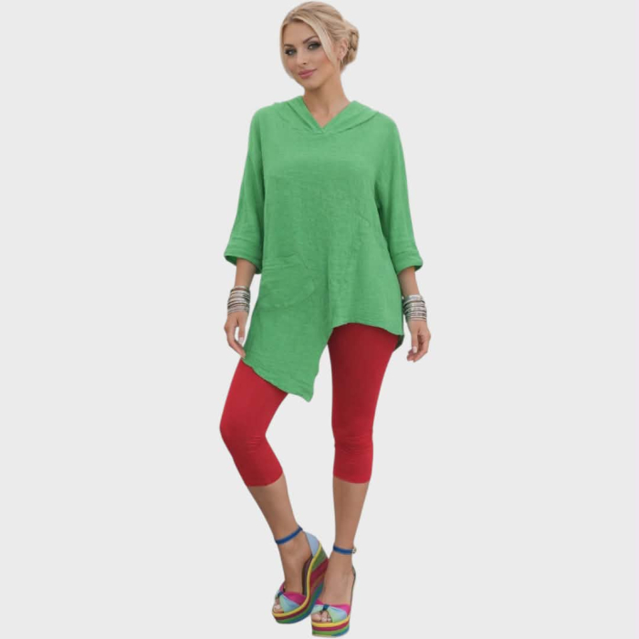 Bluza tip hanorac din in verde cu un buzunar in partea dreapta