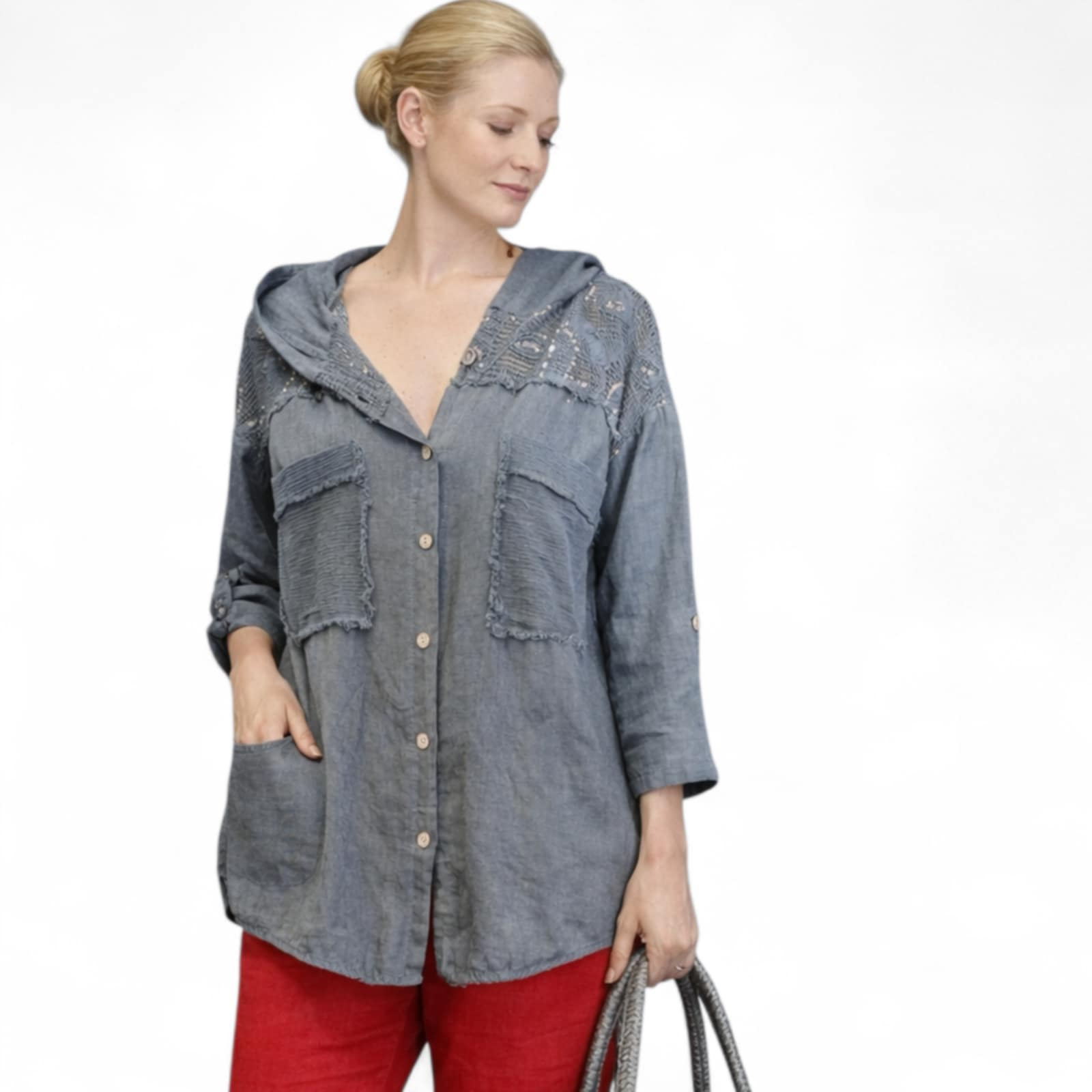 Hanorac din in cu paiete la bust