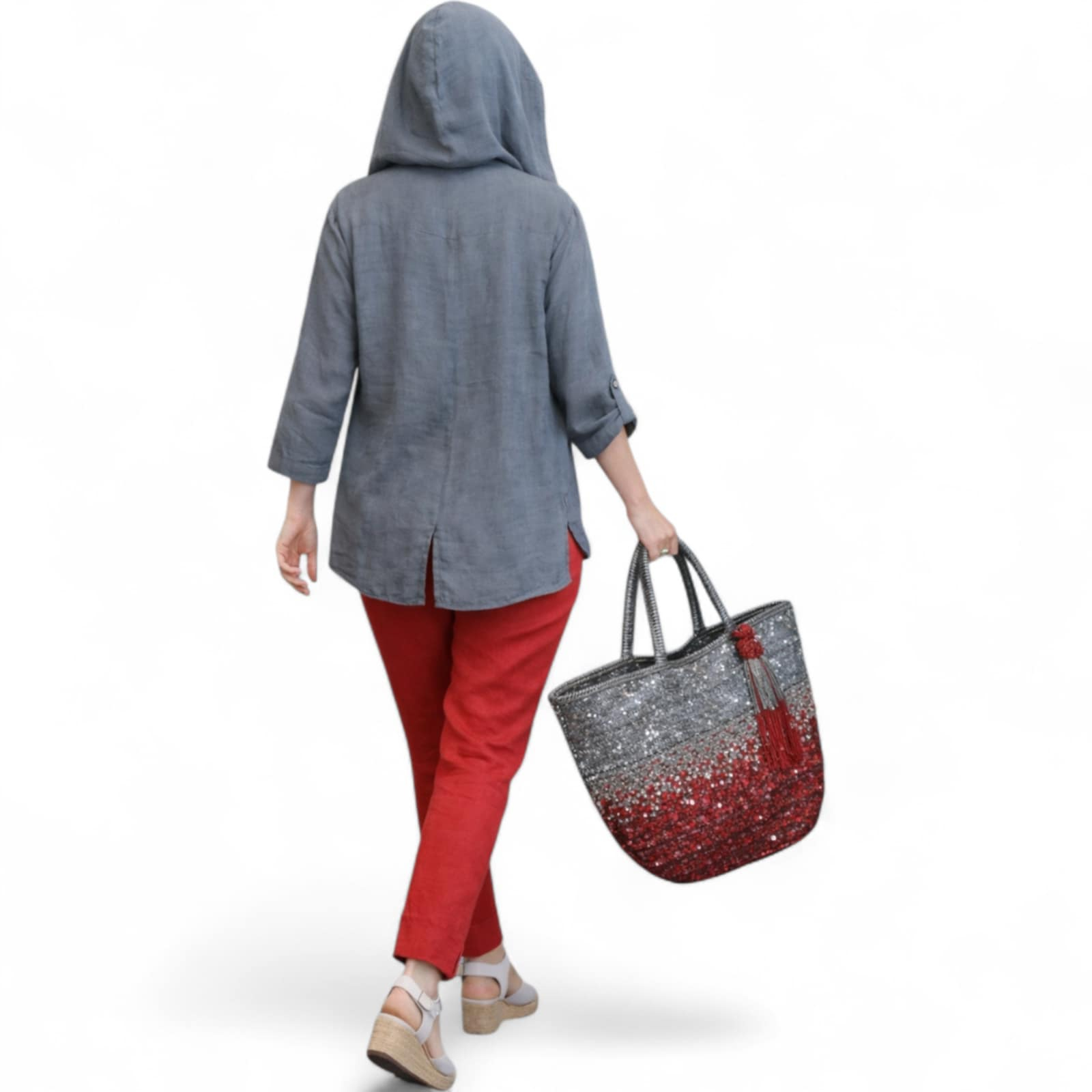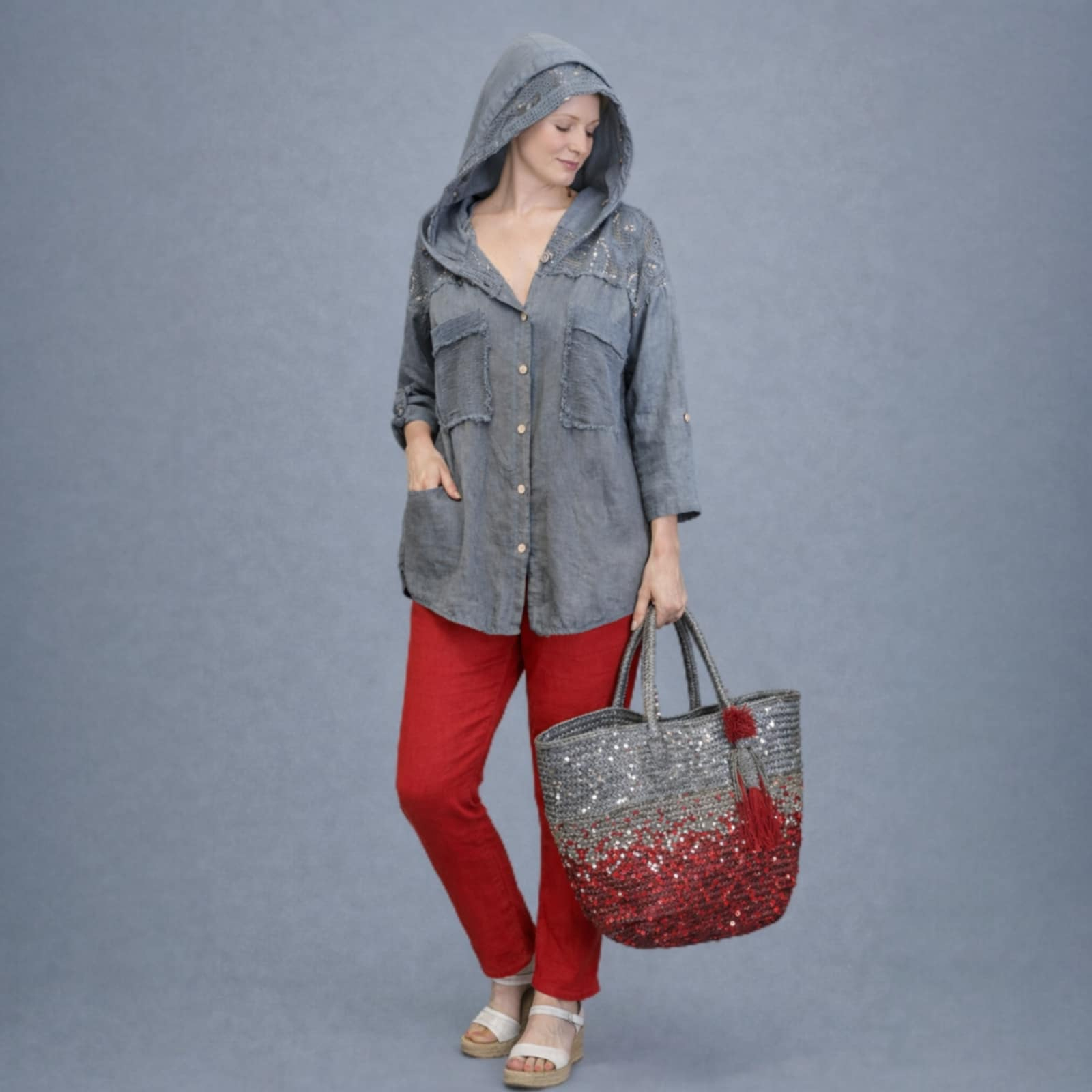 Hanorac din in pe fond gri sobolan cu paiete la bust