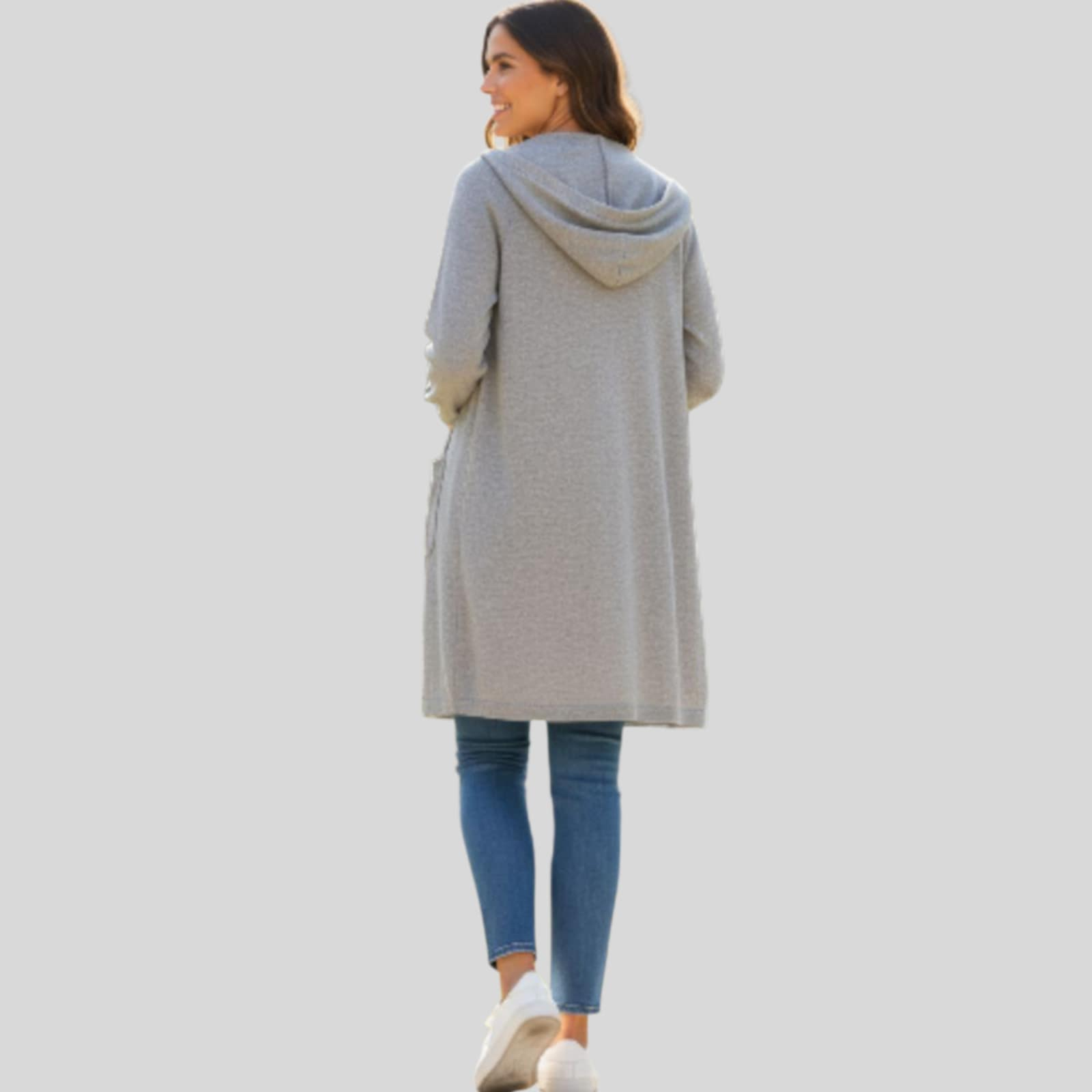 Cardigan tricotat gri cu gluga si buzunare