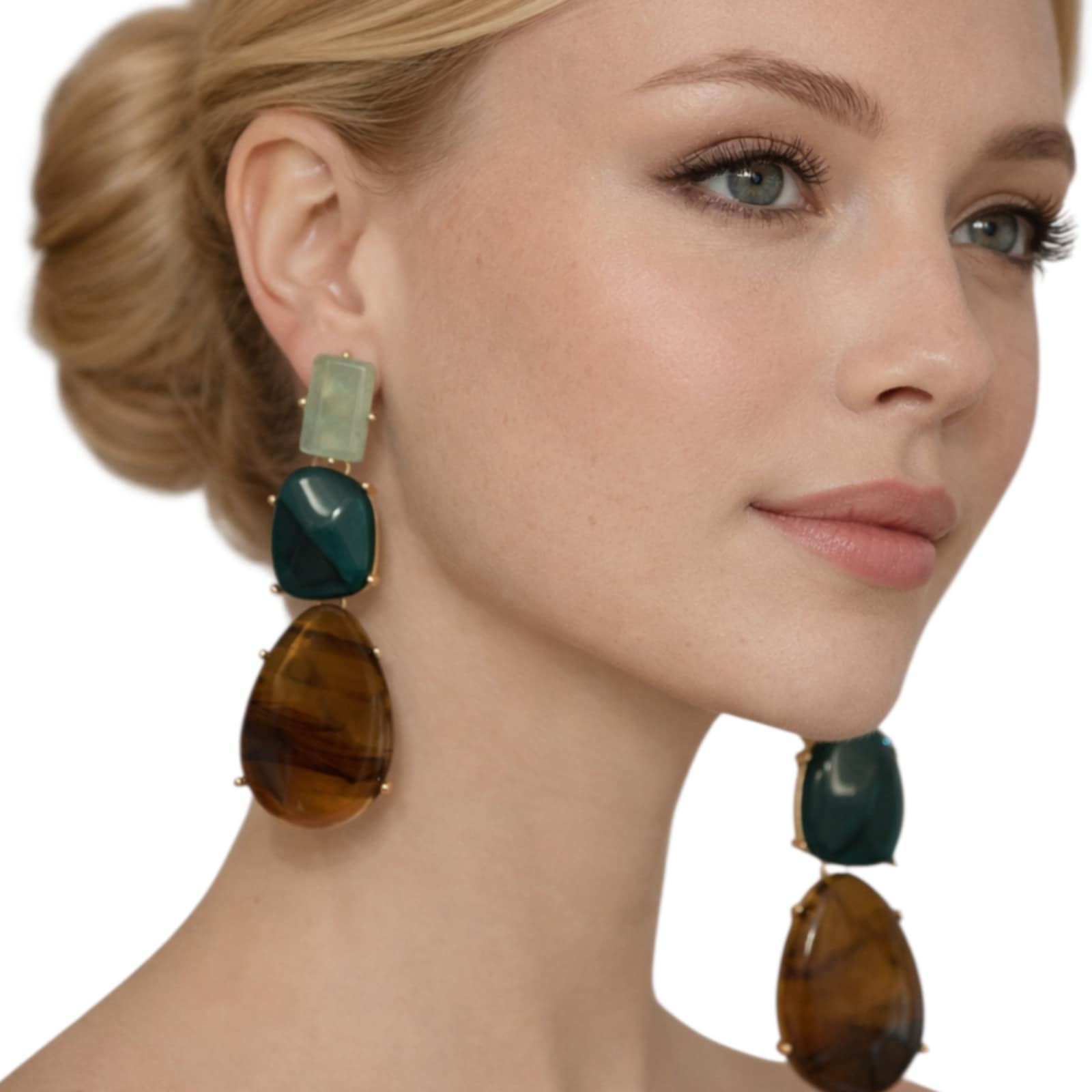 DEsignul vertical, cu trei pietre suprapuse, alungeste optic silueta si adauga un accent sofisticat oricarei tinute.