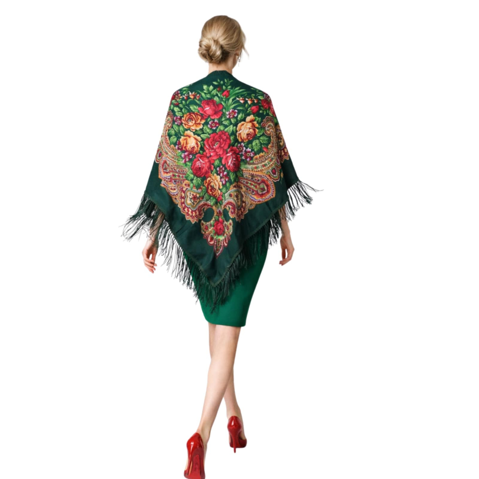 Sal tip gipsy cu imprimeu floral intens cu franjuri