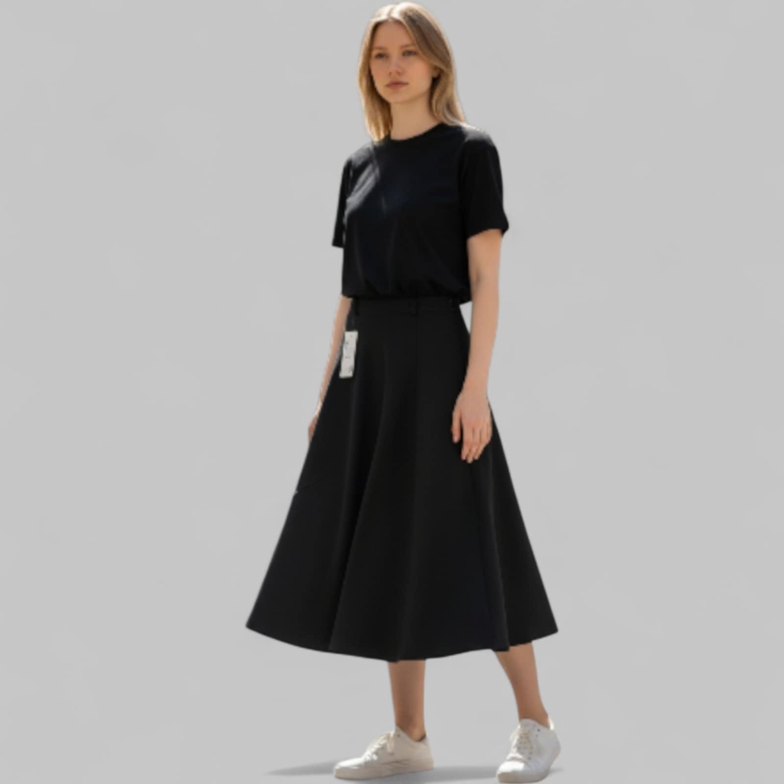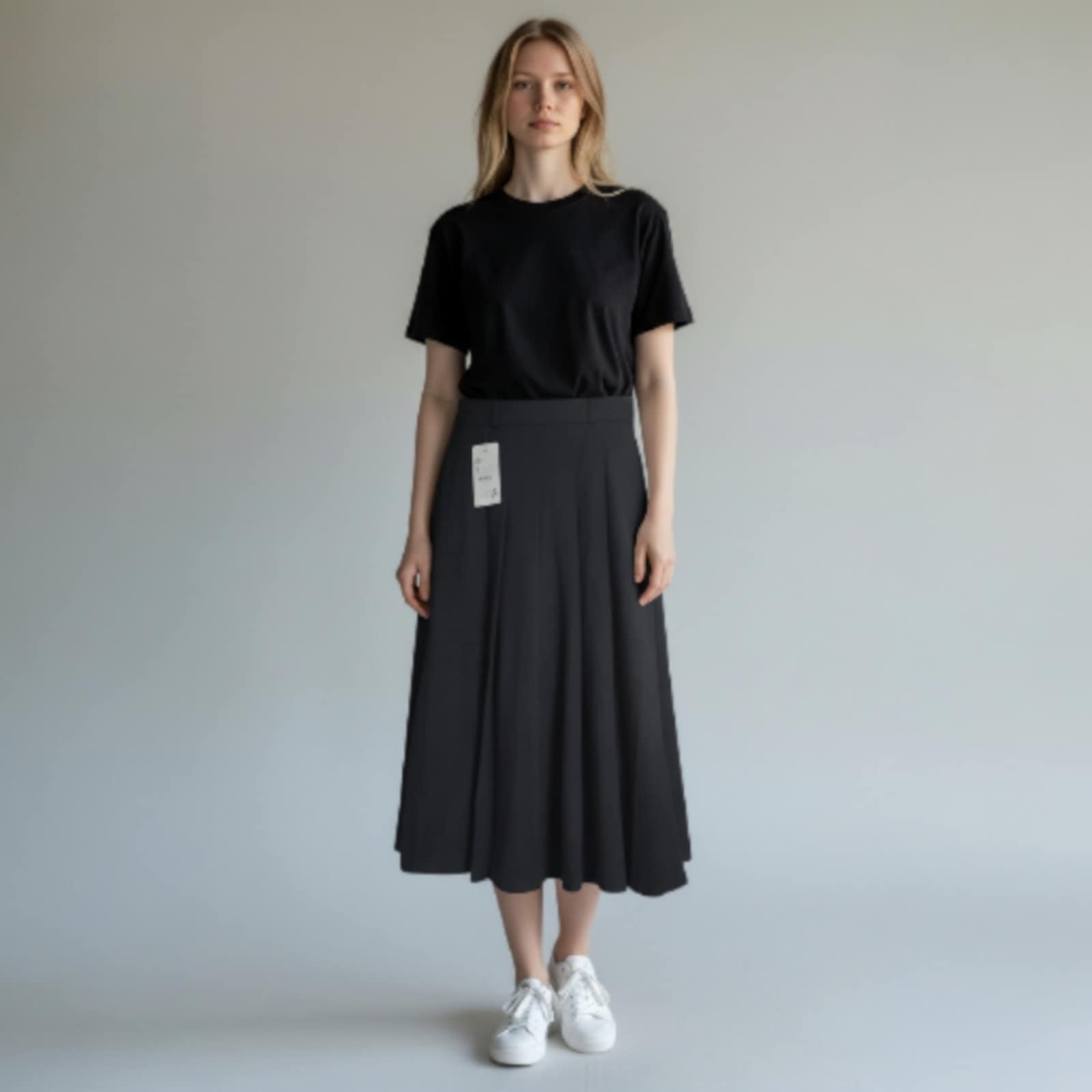Fusta neagra pentru iarna cu pliseuri pe partea din fata