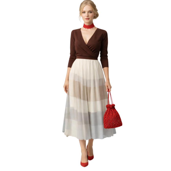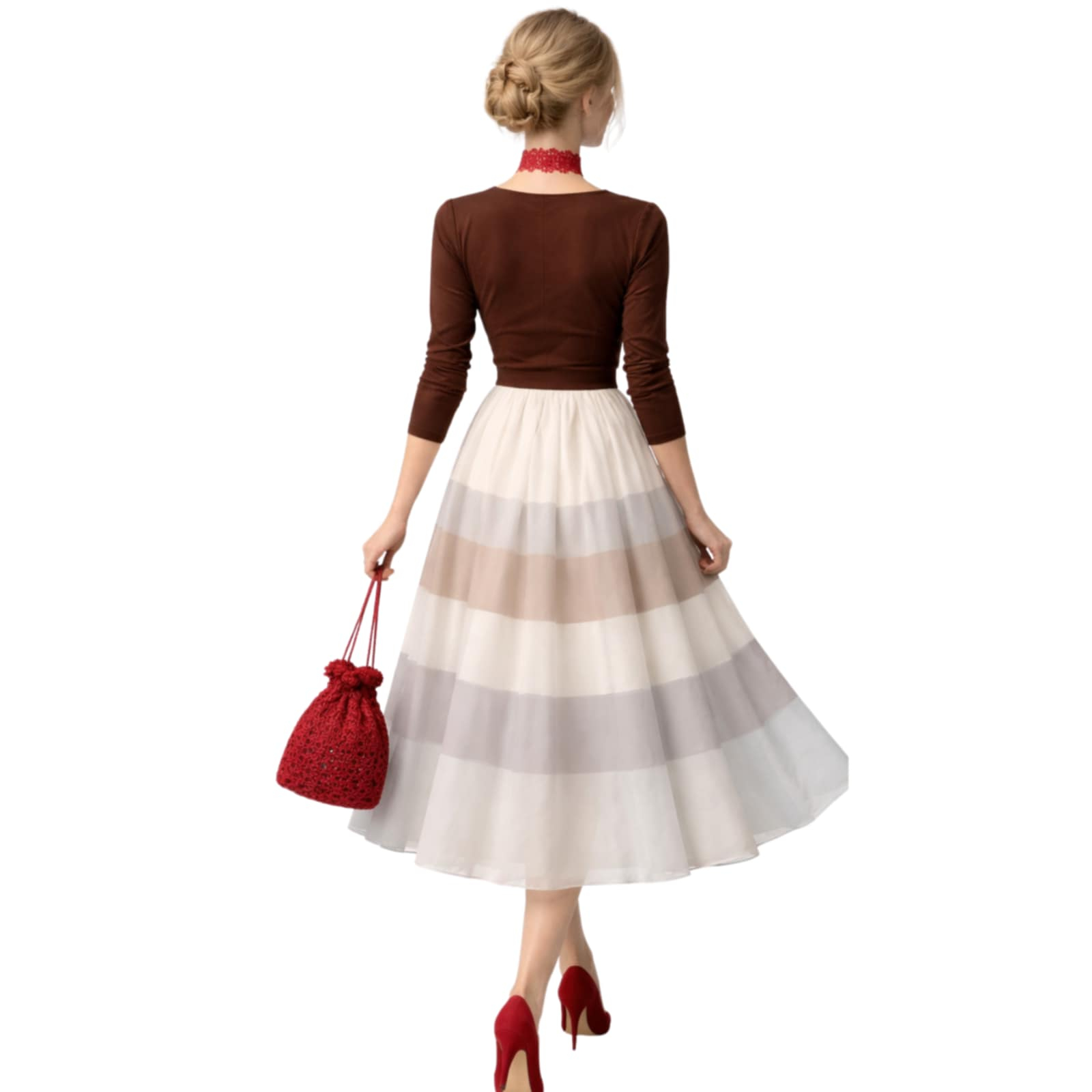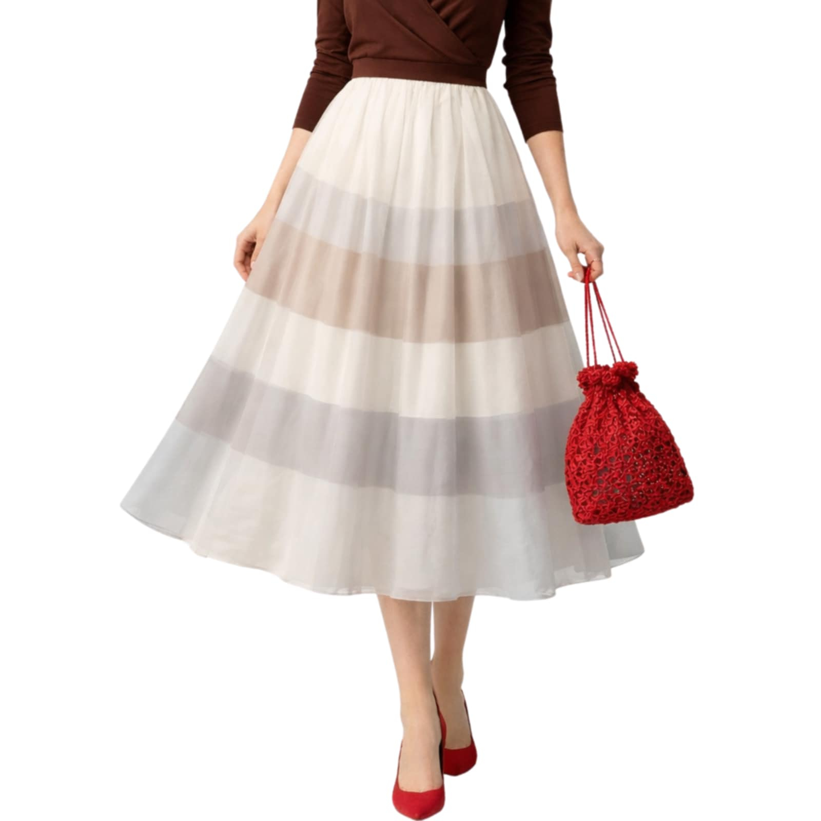 Fusta din tulle cu dungi maronii si banda elastica in talie