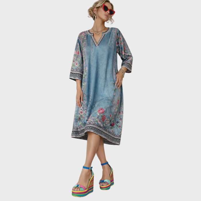 Rochie croi larg cu imprimeu floral si decolteu anchior