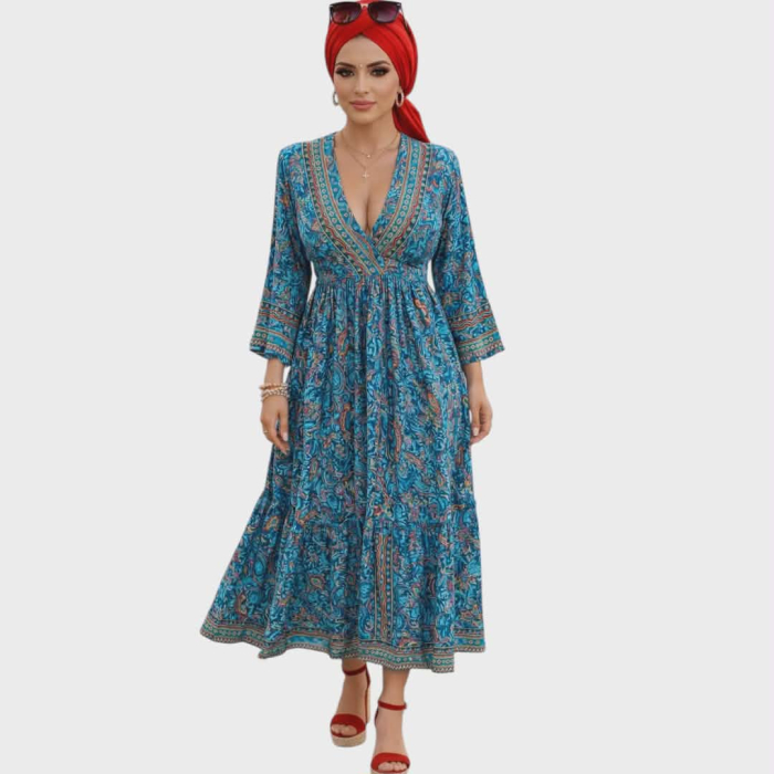 Rochie din matase indiana cu decolteu generos