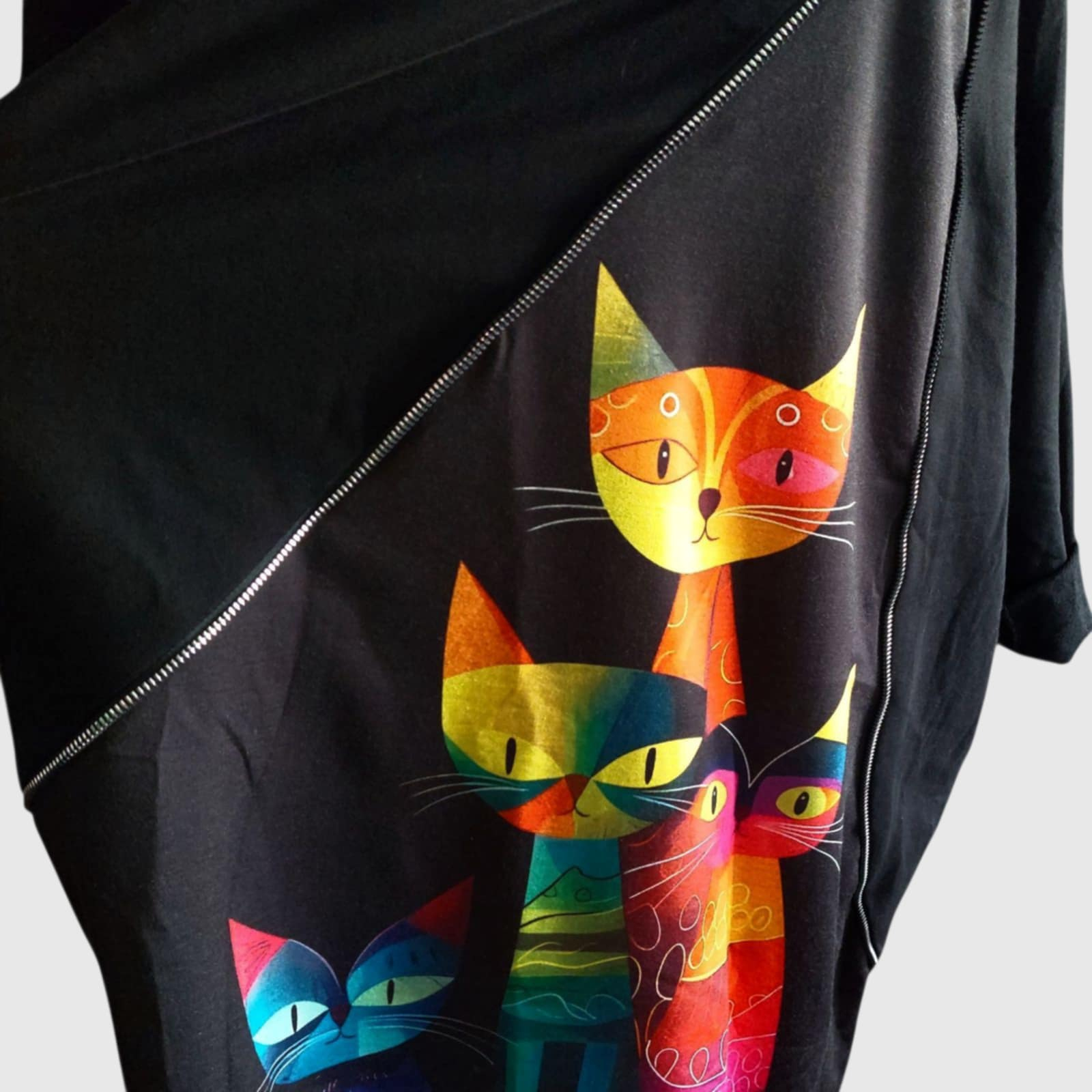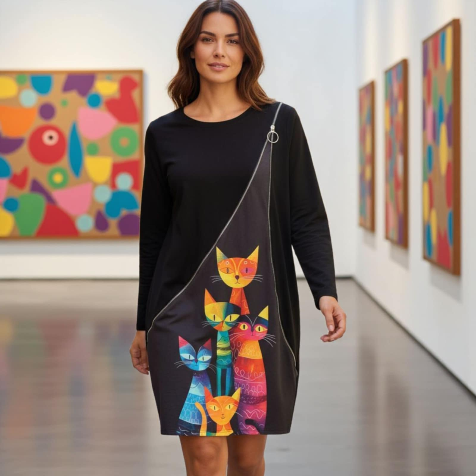Pentru un plus de modernitate, rochia are doua parti de fermoar pe partea din fata