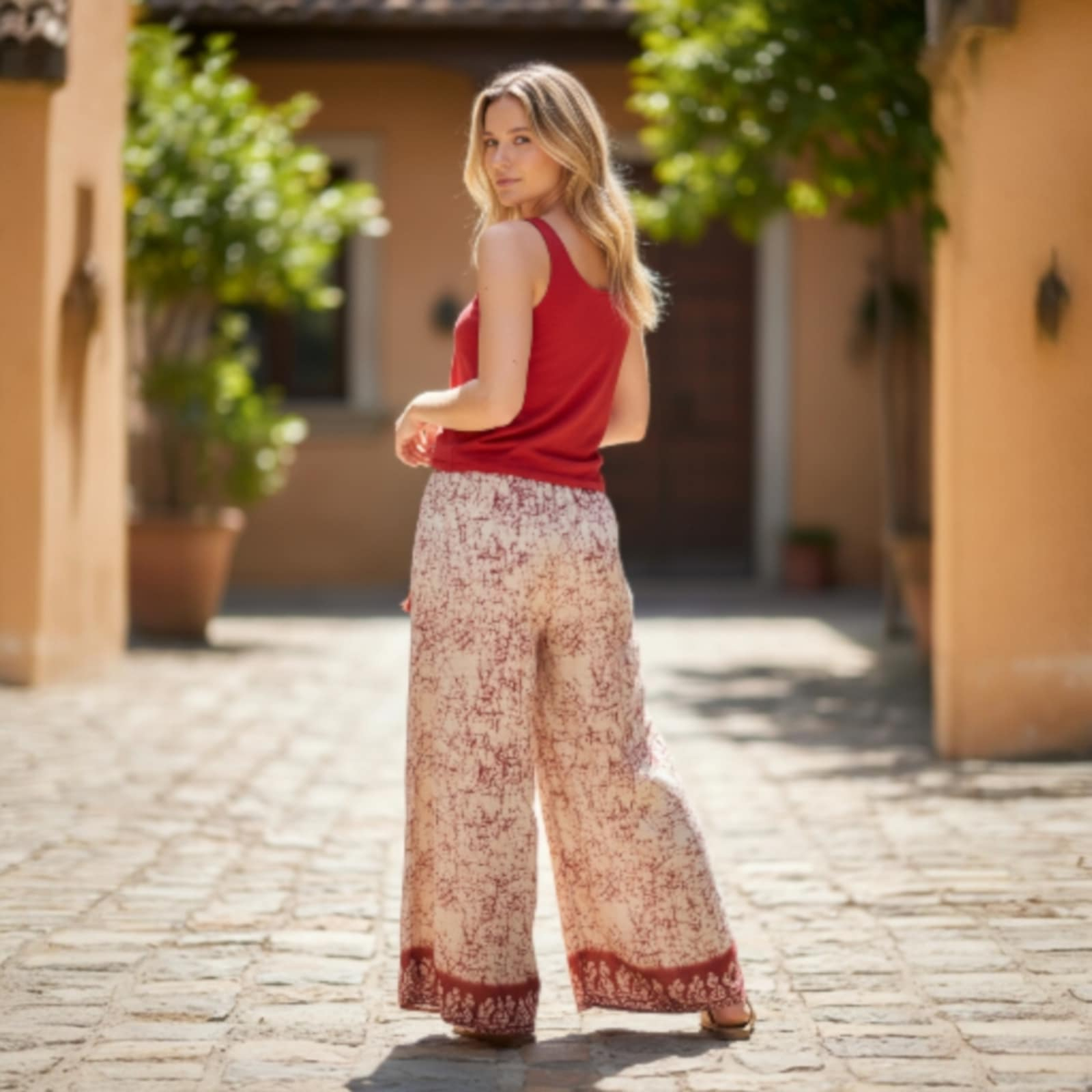 Pantaloni croi larg din matase indiana cu banda elastica in talie