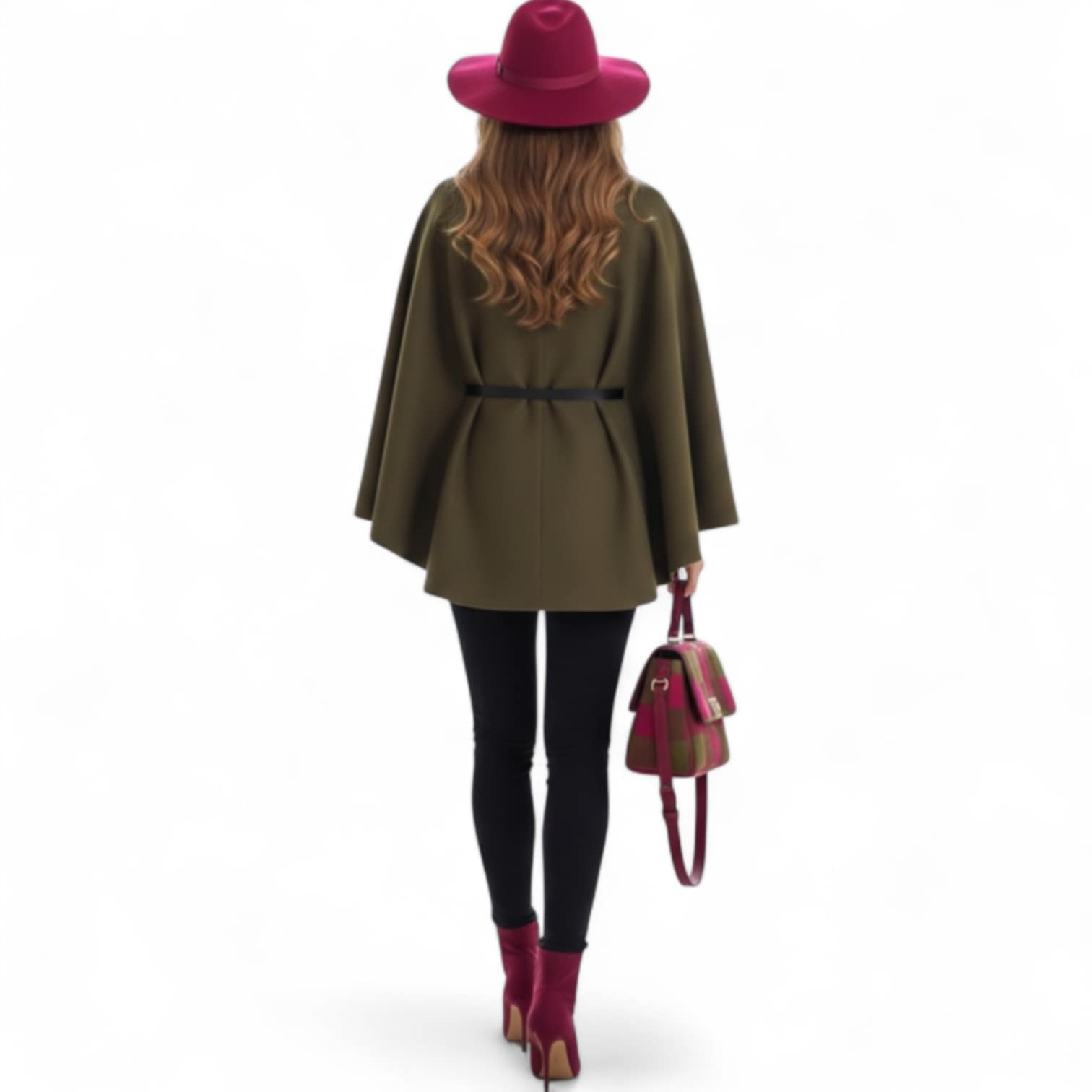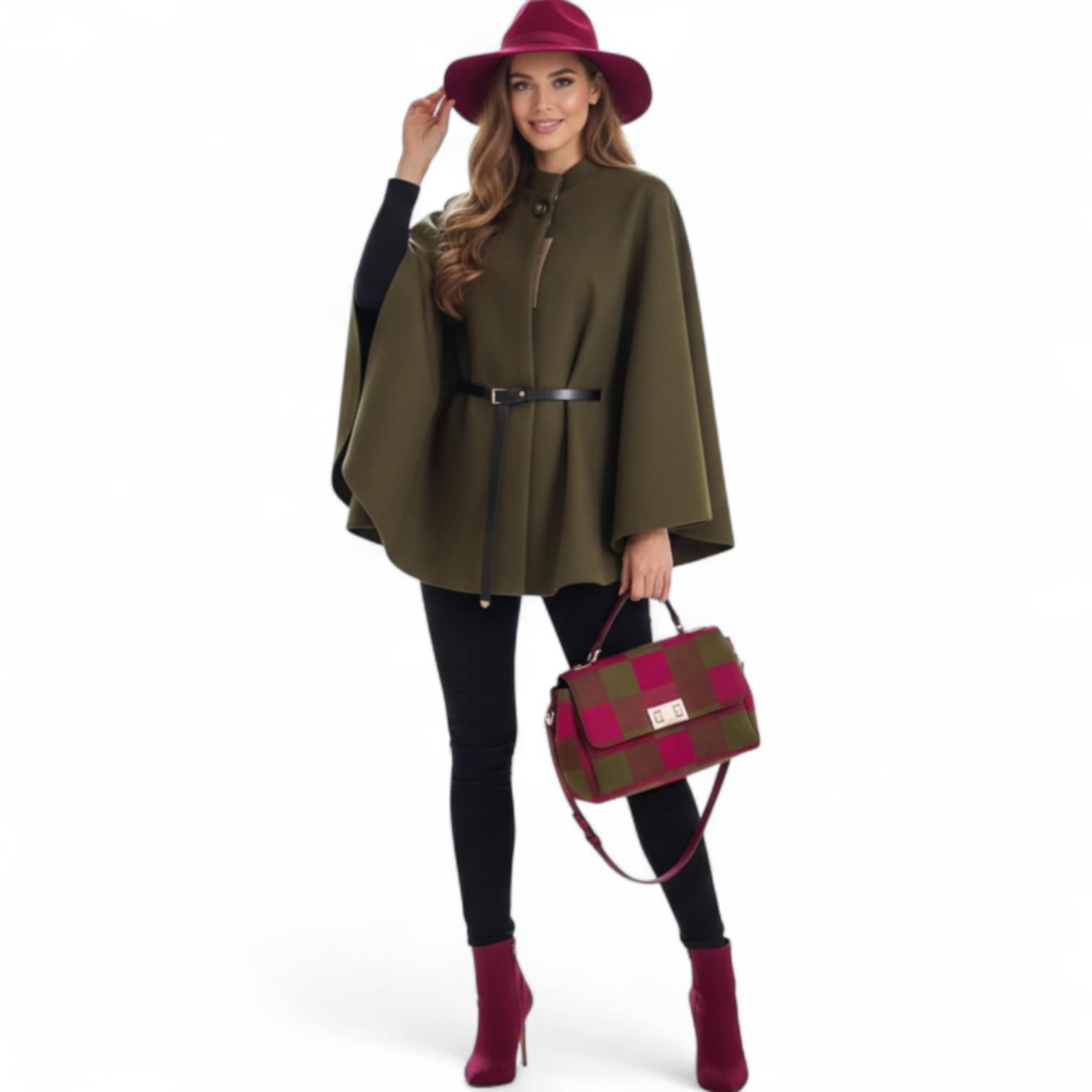 Poncho pentru sezonul rece cu, curea si nasture la guler