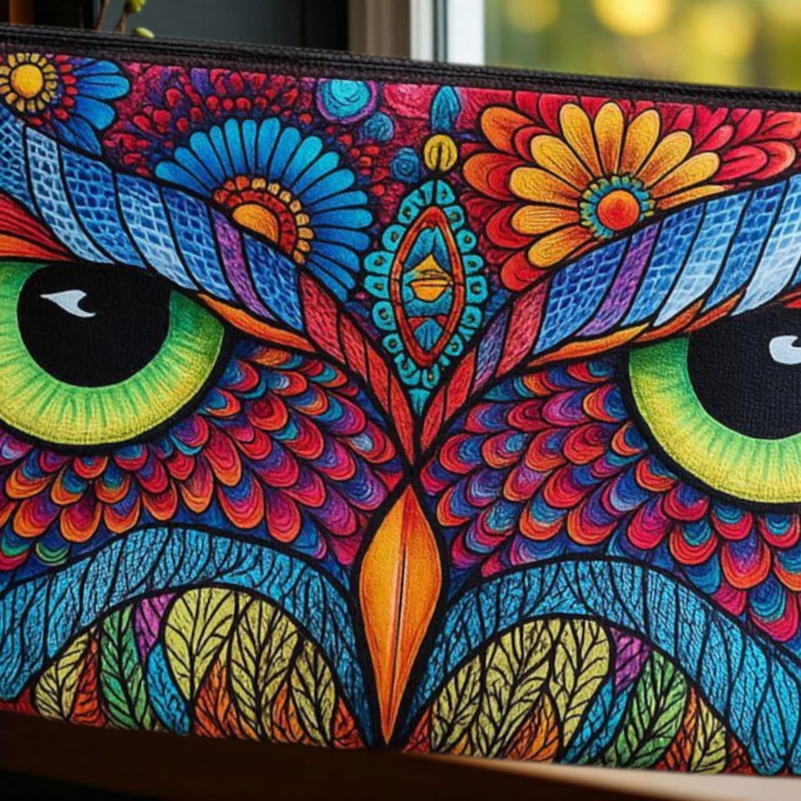 Portofel/ portfard cu imprimeu bufnita colorata din material