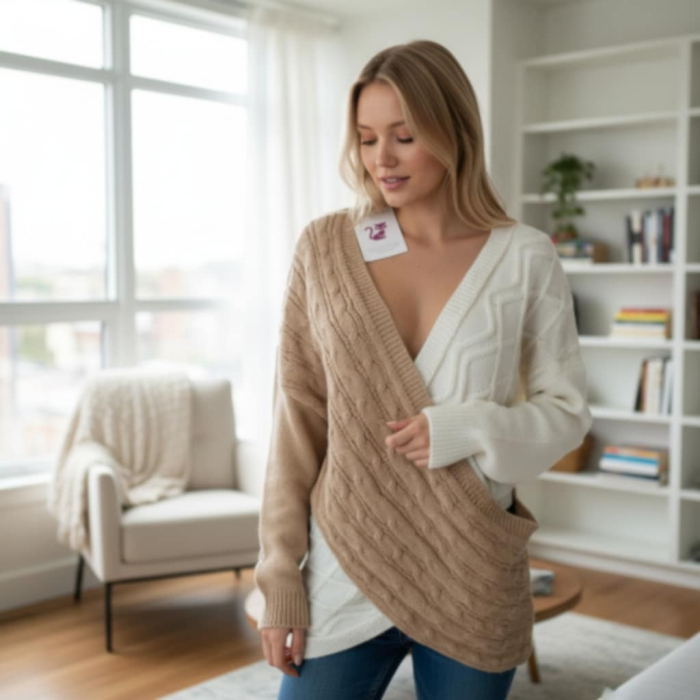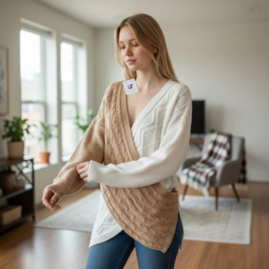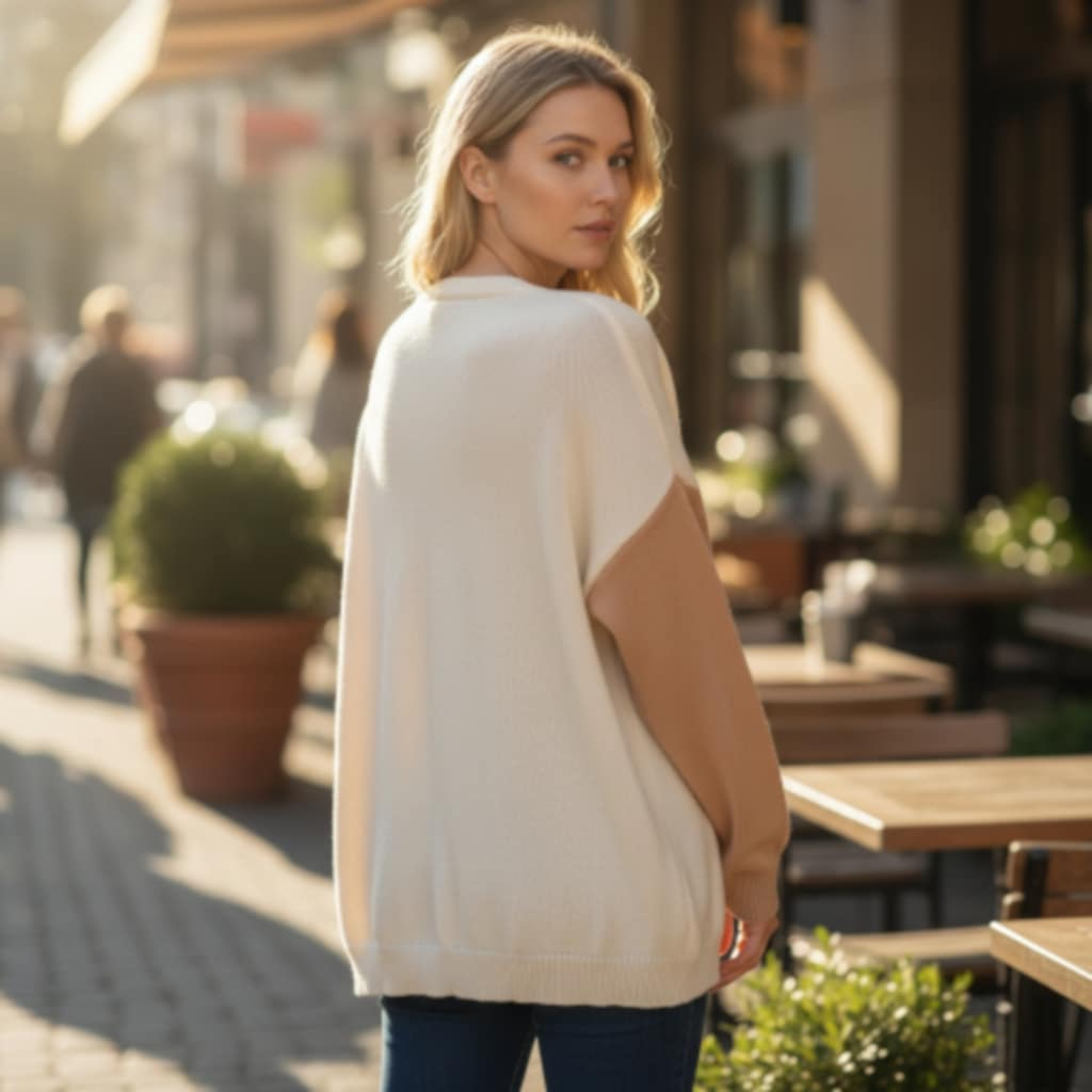 Pulover tricotat in doua culori cu decolteu adanc petrecut pentru marime mare