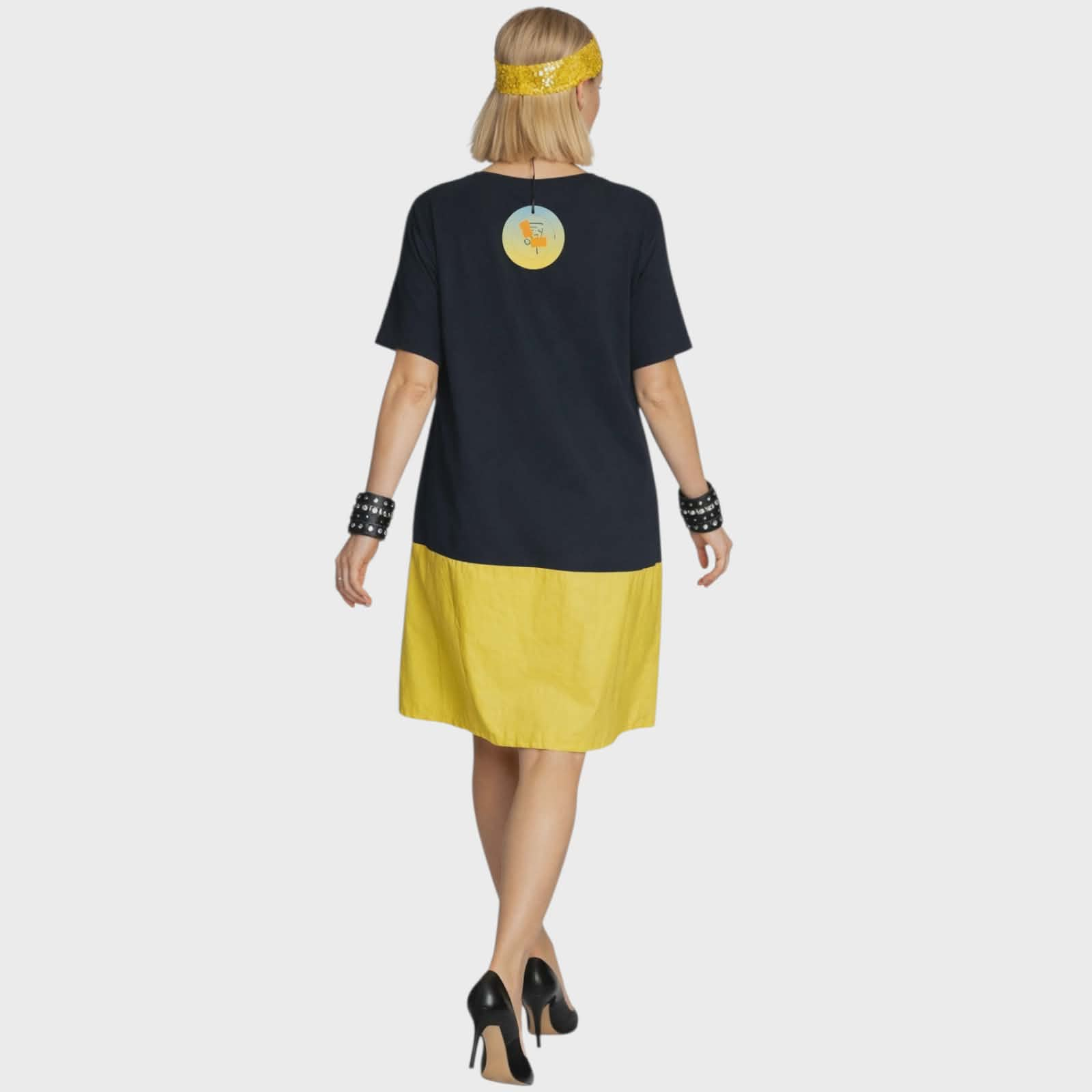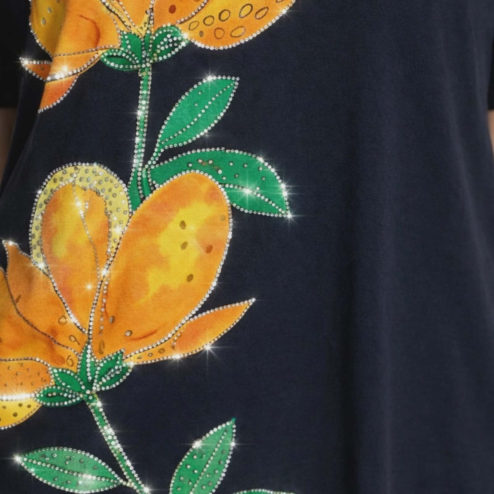 Pe partea din fata are un imprimeu floare cu strasuri.
