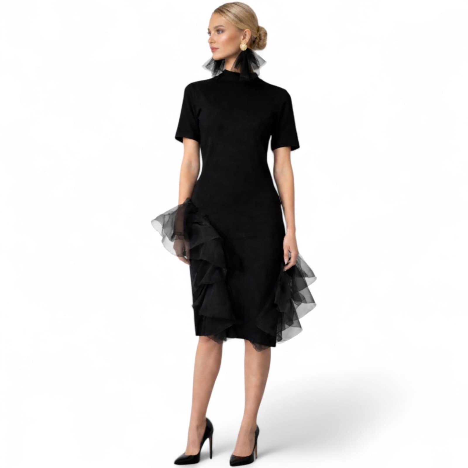 Se pate purta cu stiletto, accesorii fine sau cercei statement pentru un efect spectaculos