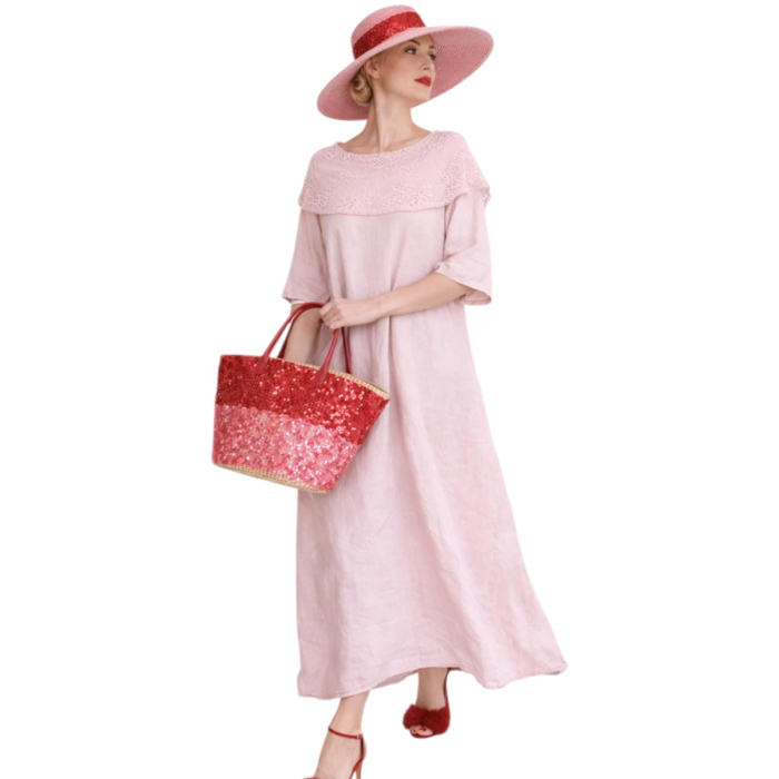 La poale are un snur care se poate strange, astfel rochia va avea un model gogosar.