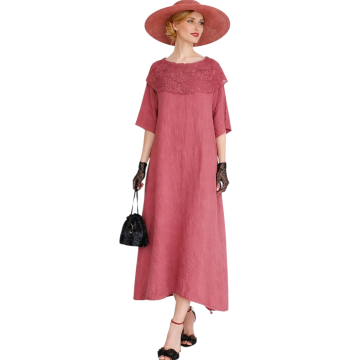 Rochie din in croi larg si guler generos din dantela