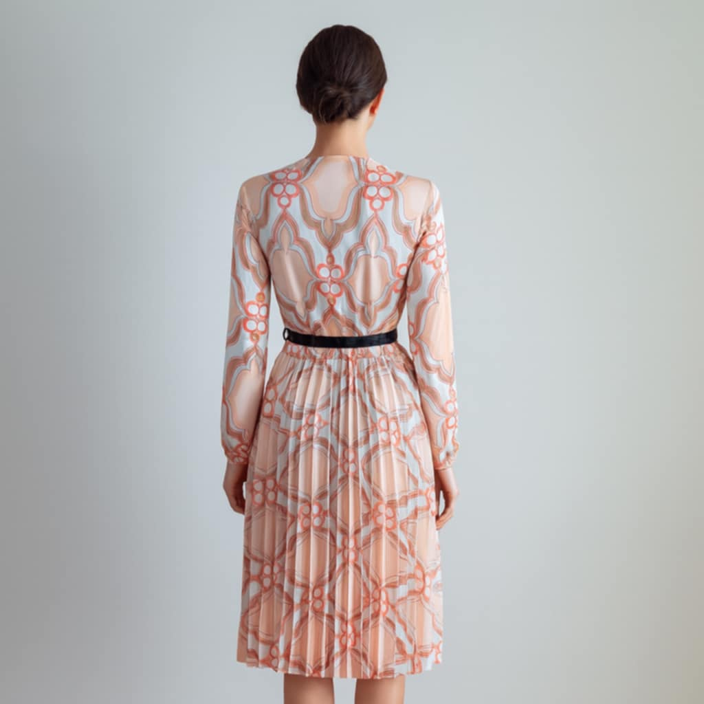Rochie din satin plisata cu decolteu parte peste parte si curea in talie