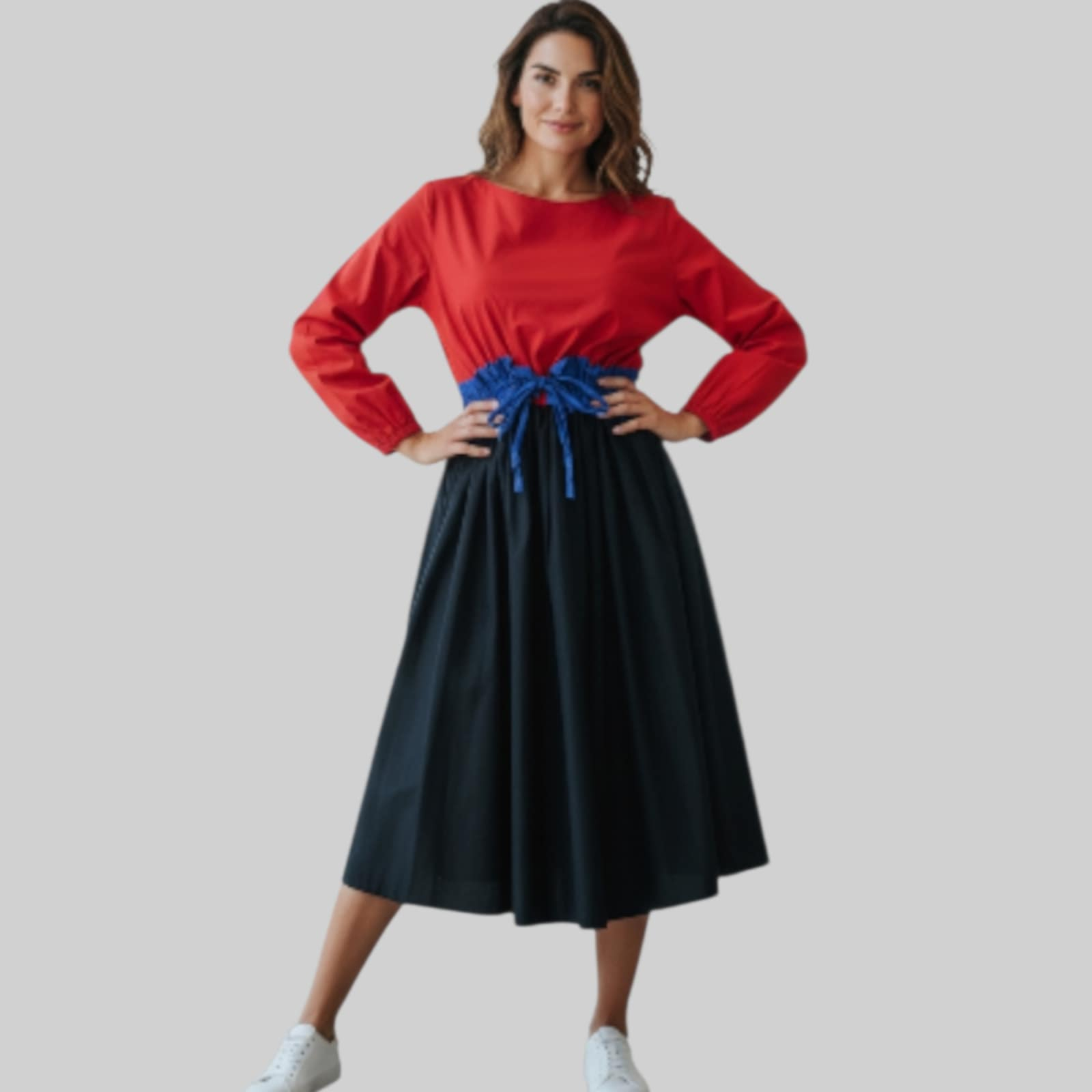 Rochie din bumbac in trei culori si talie accentuata incretita