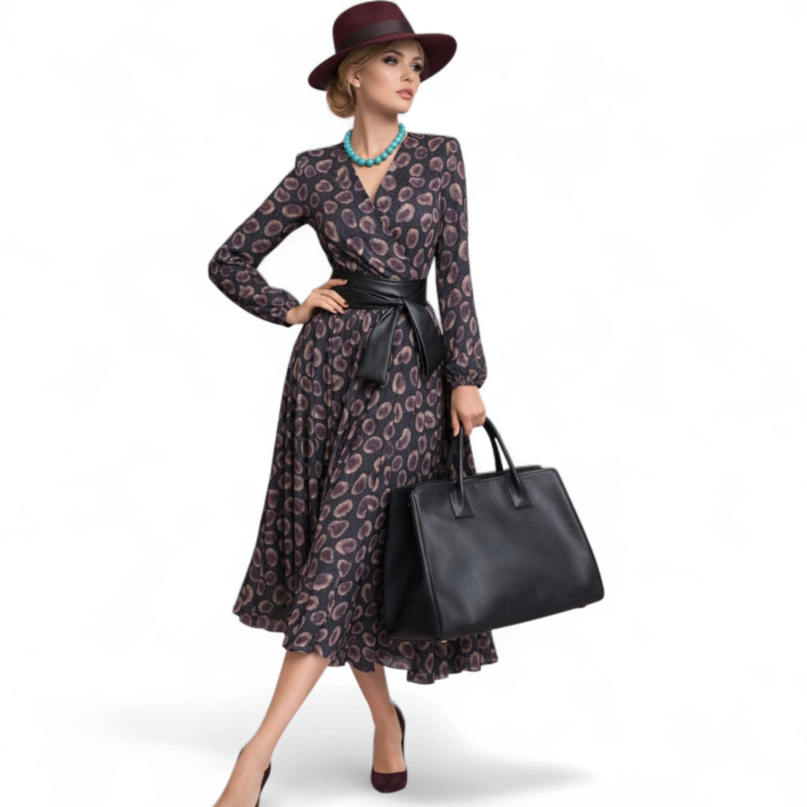 Rochie plisata pentru sezon rece cu decolteu parte peste parte