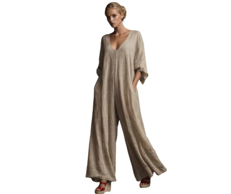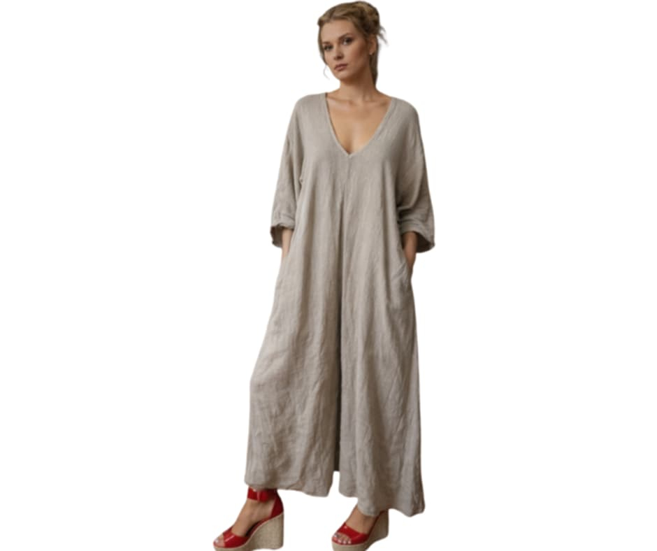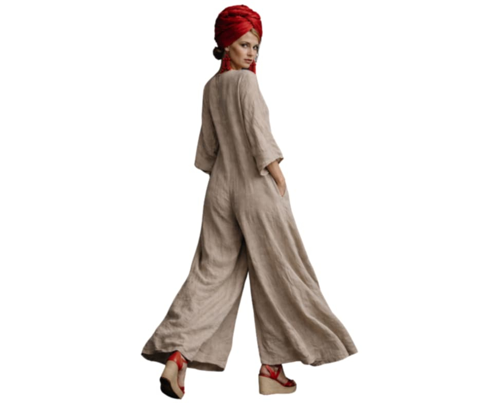 La spate se inchide cu un nastureSalopeta din in croi larg