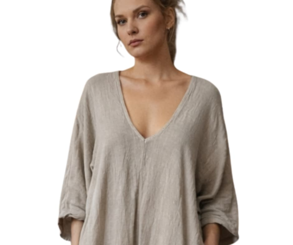 Salopeta crem croi larg din in cu decolteu in V cu maneci